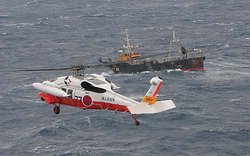 據(jù)日本新華僑報網(wǎng)報道,12日下午日本時間2點(diǎn)49分,記者與中國駐長崎總領(lǐng)事館領(lǐng)事李斌取得了聯(lián)系。據(jù)李斌領(lǐng)事介紹,12日上午8點(diǎn)鐘,中國駐長崎總領(lǐng)事館接到日本第7管區(qū)海上保安總部有關(guān)6名中國人失蹤的消息。當(dāng)時,總領(lǐng)館要求對方將情況寫明,送一份傳真過來。8點(diǎn)半鐘,日本第7管區(qū)海上保安總部送來有關(guān)情況說明的傳真。總領(lǐng)館收到這份傳真以后,立即向中國外交部領(lǐng)事司做了報告。隨后,總領(lǐng)館幾乎是每隔一會兒就給日本第7管區(qū)海上保安總部和山田水產(chǎn)公司打一次電話,詢問營救情況。據(jù)了解,日本第7管區(qū)海上保安總部出動了4架飛機(jī)和多艘巡視船只進(jìn)行搜尋。但是,鄰近中午,浪越來越大,已經(jīng)高達(dá)5、6米。
