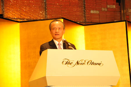 記者在現(xiàn)場(chǎng)看到,日本政經(jīng)界的許多“大腕”人物出席了招待會(huì)。其中有日本參議院議長江田五月、經(jīng)濟(jì)產(chǎn)業(yè)大臣直島正行、國家公安委員會(huì)委員長中井洽、公明黨黨首山口那津男、前首相福田康夫、中曾根康弘、前經(jīng)濟(jì)產(chǎn)業(yè)大臣二階俊博、前自民黨干事長中川秀直、伊吹文明,經(jīng)團(tuán)聯(lián)會(huì)長御手洗富士夫等等。