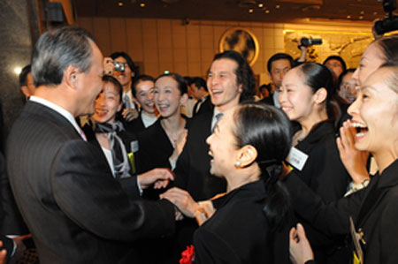 日本華人文學(xué)藝術(shù)家聯(lián)合會(huì)會(huì)長關(guān)乃平介紹說,今天大使在致詞中講到四川大地震以后開展的救援活動(dòng)。其實(shí),在我們?nèi)A藝聯(lián)舉行的書畫賑災(zāi)義捐活動(dòng)中,崔天凱大使也捐獻(xiàn)了自己寫的字幅,推動(dòng)了這項(xiàng)活動(dòng)的進(jìn)行。