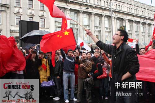 反對藏獨支持奧運 愛爾蘭華人舉行大游行(組圖)(2)