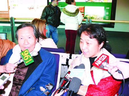 劉面換身穿傳統中式棉襖、藍色外套和白色圍巾出現,雖然經過十多小時的飛行,精神看起來仍然不錯。前往接機的史維會共同主席列國遠,特別送上紅色大圍巾予以御寒。