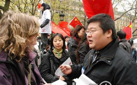 4月19日,法國華人支持北京奧運集會現(xiàn)場,李洹被安排第四個出場。他站在高高的麥克風后面,時而抑揚頓挫,時而真情流露。原計劃15分鐘的演講,最后持續(xù)了近20分鐘,其間在場留學生幾次為之熱情歡呼,一些法國人也頗為震驚。在演講中,李洹用法國人的語言和法國人能夠接受的邏輯充滿感情地表達看法,公開表示自己的情感受到了傷害。