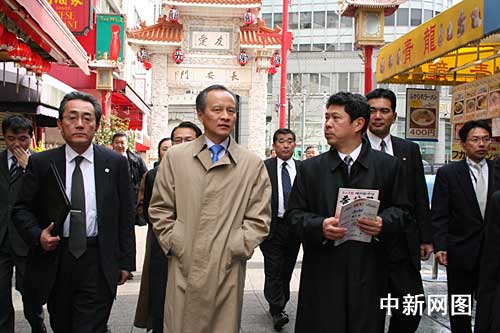 中國駐日本大使崔天凱(左二)訪問神戶中華街南京町。