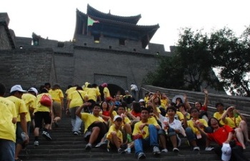營(yíng)員中的絕大多數(shù)是第一次到中國(guó),長(zhǎng)城在他們的腦海里只是關(guān)于“世界第八大奇跡”的想象,有機(jī)會(huì)親自攀登,大家的心情非常激動(dòng)。車(chē)行至居庸關(guān)景區(qū),翠峰重迭,風(fēng)光旖旎,長(zhǎng)城蜿蜒如龍盤(pán)踞在崇山峻嶺之間,營(yíng)員們按捺不住激動(dòng)的心情,不禁歡呼起來(lái)。