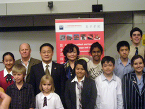 任共平在致辭時(shí)表示,很高興看到昆州學(xué)生如此踴躍地學(xué)習(xí)中文并參加中文演講大賽,祝賀獲獎(jiǎng)?wù)呷〉玫暮贸煽儭K赋觯瑢W(xué)習(xí)中文既可以為自己增加一門語言技能,也能打開了解中國歷史和文化的窗口,建立起相互溝通、增進(jìn)中澳兩國人民友誼的橋梁。他表示,各位學(xué)生在慶祝中華人民共和國建國60周年之際參賽、獲獎(jiǎng),具有特殊意義,希望同學(xué)們繼續(xù)努力。