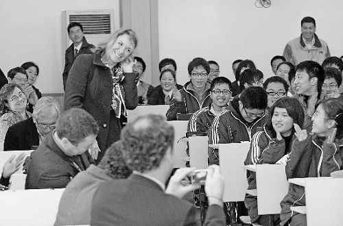 昨天(8日)上午9點,杭州學軍中學的英語課堂上,出現了一群洋面孔——美國中小學校長代表團正坐在教室里旁聽。可能因為頭一次聽中國老師上英語課,美國校長們都有點興奮,有幾位校長甚至自告奮勇代替學生回答老師的提問,引得課堂上掌聲笑聲不斷。這是記者見過的氣氛最輕松的一堂對外公開課。