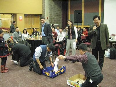 成語接龍和逢七數數也引爆了全場的笑聲,使全場沸騰的則是游戲“七拼八湊”。游戲中,呂敏偉將與會者分為“左派”和“右派”,要求兩派老師同心同德,以最快速度籌集現場報出的物品。兩派人員總動員,紛紛將手表、錢、書包、鋼筆、口紅等取出,拋進箱子。最令人捧腹的是,有的老師脫下了襪子,獻出了皮帶,最后由右派險勝。當天聯歡會上到處充滿歡聲笑語,以及對彼此的新年祝福。
