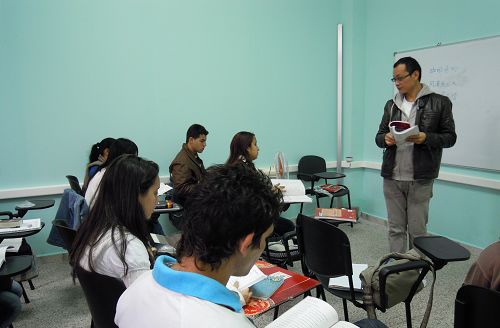中新網(wǎng)2月1日電 據(jù)國家漢辦網(wǎng)站消息,在駐古巴使館的高度重視和有力支持下,古巴哈瓦那大學孔子學院自開學以來,獲得當?shù)孛癖姷臒崃曳磻OM麍竺麉⒓訚h語班學習的人數(shù)越來越多。鑒于報名者中有很多來自在校大學生,也有一些是曾在中國學習過漢語的留學歸國人員,孔子學院開設(shè)了3個本科漢語班,從眾多報名者中錄取了52人,開展?jié)h語本科教學。孔子學院從院長到教師工作熱情很高,講課生動有趣,教學效果良好。