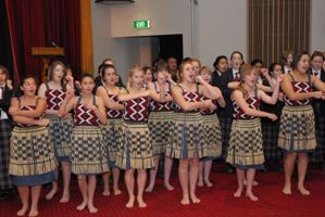 張利民與該校校長Prue Taylor一同步入禮堂,學生們用傳統的毛利歌舞歡迎大使一行的到來。校長在講話中表示,對于能夠在基督城女子高中這所擁有125年歷史的學校開展“漢語角”活動,她倍感榮幸,同時也感謝張利民及新西蘭中使館教育處官員、新西蘭漢語顧問以及社會各界為促進漢語學習和交流的朋友們長期做出的貢獻和支持。