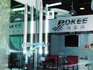 昨天下午,記者來到新中關大廈10層看到,博客網大門緊鎖,里面空無一人(見圖)。坐在公司外面座位上的兩個人對記者說,他們就是被裁的員工,從十月底開始,公司就已經像現在這樣關門了。對于網上的帖子,他們說一切內容屬實,公司欠發員工7、8月工資的40%和9、10月的全額工資,以及保險、公積金等,共有四五十人被欠薪,每人大概欠一萬多元!拔椰F在還沒找到新工作。聽說今天有人可能會回這兒,就趕來公司門口等著要薪水,現在也沒見到人!币晃粏T工無奈地說。