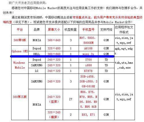 但據日前曝光的一份中國移動的文件顯示,的確有一款名為戴爾mini 3i的合作機型,支持GSM網絡,屏幕尺寸為360×640。