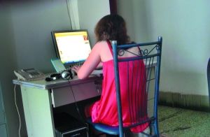 兩間臥室就是工作間,六個年齡大約20多歲的外地女孩,身穿睡衣,腳穿拖鞋,頭發凌亂,睡眼朦朧,都是一副剛起床還沒有梳洗的邋遢形象。她們當中,有人正一邊吃著東西一邊忙亂敲著鍵盤,有人一邊打著電話一邊還嚼著東西。每個人面前電腦屏幕上,都開著多個QQ聊天窗口。
