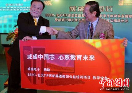 在捐贈儀式上,威盛宣布向北京大學繼續(xù)教育學院、文理應用學院ESEC教育機構TIP項目捐贈一批威盛Nano凌瓏處理器平臺電腦教學設備,這是威盛從2006年開始對該西部英語教師公益培訓項目的第三期捐贈。與此同時,威盛中國芯成長數(shù)字營云南分站也正式揭牌,從而將威盛中國芯成長數(shù)字營的分站數(shù)量增加到21個,基本覆蓋整個西部地區(qū)。
