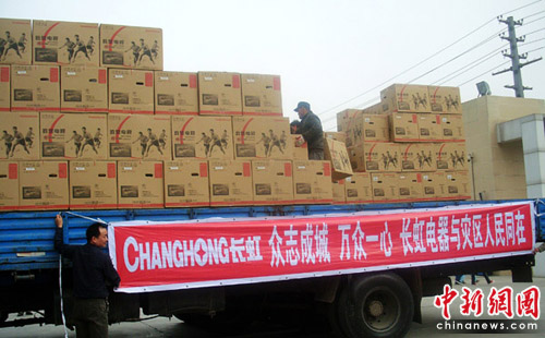 4月19日,在駐地部隊某部的組織下,長虹緊急從蘭州、西安等庫房抽調貨源,發出1000臺電視;20日,長虹再次發出610臺電視。