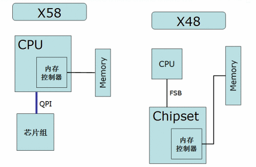 以上是Intel X58和Intel X48芯片組之間的規(guī)格對比列表。由以上列表我們可以看到,Intel X58芯片組相對X48芯片組來說,有許多方面的改進(jìn),北橋方面:Intel X58芯片組支持最新的LGA1366 Core i7系列處理器,而Intel X48芯片組支持上一代的LGA775 Core 2系列處理器;此外由于Intel Core i7系列處理器采用了新的QPI(Quick Path Interconnect)總線設(shè)計(jì),QPI的每一個(gè)鏈接均為全雙工,提供6.4GT/s的帶寬,而每一個(gè)2-byte寬度的鏈接每個(gè)方向可以得到12.8GB的帶寬,從而使得一個(gè)單一的QPI鏈接就能夠提供25.6GB/s的帶寬,是LGA775平臺(tái)架構(gòu)的2倍。