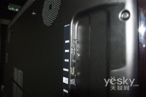 這一系列的電視接口設(shè)置相當(dāng)強(qiáng)大,側(cè)面提供了兩組USB接口和四組HDMI接口,機(jī)身下部提供了一個(gè)LAN網(wǎng)口,有線、無線電視信號接口各一個(gè),而AV接口和色差分量接口由于機(jī)身位置有限都采用了一轉(zhuǎn)多的接口,從圖片中的可以直觀的看到。