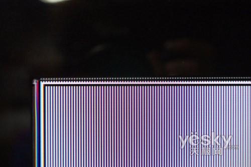 三星UA46B7000WF采用了三星原裝S-PVA面板,從像素點能明顯的看出來。全像素點對點顯示對于三星來說并不是什么難事,分辨率測試卡點擊放大后可以看到測試線明顯,沒有出現粘連的情況。