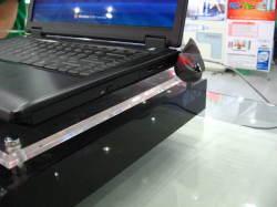 清華同方鋒銳K40A采用了主流的14英寸的寬屏顯示器,機殼采用了工程塑料的材質,表面經過磨砂處理,這樣既可以提高手握時的靜摩擦力,又免去了經常被沾染指紋的不便。純黑色的機身配合圓滑的四周邊緣,顯得整機線條十分流暢,凸顯其華貴和大氣。