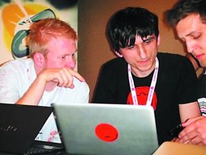 成功攻破iPhone的文森佐·埃奧佐和拉爾夫·溫曼在比賽現(xiàn)場。