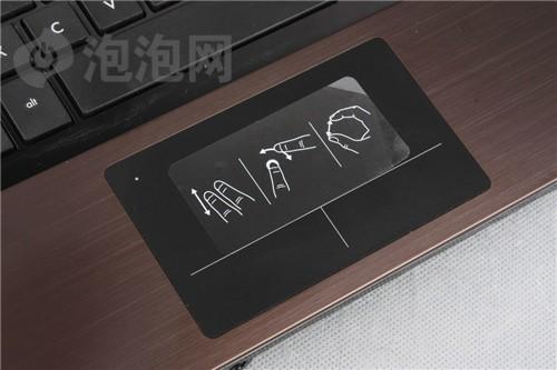 腕托使用了與機身頂蓋相同的材質,這樣做有三個優點,首先提升了手感和堅固性,另外還在一定程度上保證了設計的整體感。本機觸控板設計頗有新意,遺憾的是在按壓左右鍵時整體略微下沉,定位精度中規中矩。