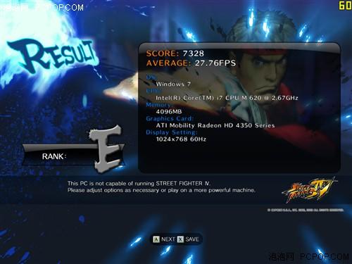 測試方案:在街霸4的測試中,我們同樣選擇了默認畫面設置和1024×768分辨率。