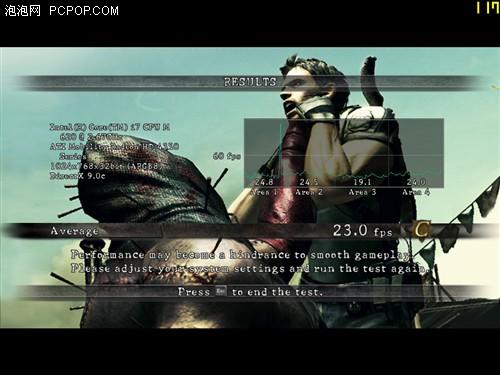 測試的平均幀數為23幀,在游戲過程中能夠感覺到丟幀的情況,但是基本還可以運行。