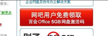 凡是網(wǎng)吧用戶,只要登錄百會(huì)首頁(),就可以看到免費(fèi)領(lǐng)取百會(huì)Office 5G網(wǎng)盤激活碼的活動(dòng)按鈕。