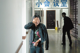 王女士在醫院的走廊里掩面而泣 記者 闞旋 攝
