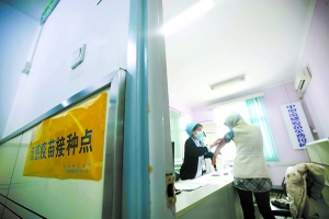 月壇社區(qū)衛(wèi)生服務(wù)中心一樓預(yù)診臺(tái)前,時(shí)不時(shí)有人詢問甲型流感疫苗接種;醫(yī)院走廊的墻上,張貼著“甲流疫苗接種在三樓”的指示語;門前工作人員也一遍遍提醒著前來詢問的患者“要帶身份證”。雖然只是京籍居民免費(fèi)接種甲流疫苗的第一天,又是工作日,不過截至10點(diǎn)30分,這里已有18名居民接受了疫苗接種。