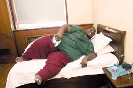 阿隆佐“老家”在美國芝加哥,與天津有13小時左右的時差,因此,他到津第一天就睡覺倒時差,睡醒后的第一件事就是稱體重。他踩上體重計后,醫生一連放了4個秤砣才測出他的重量——284.5公斤。在天津減肥生活的一年內,他計劃將體重減至90公斤左右。