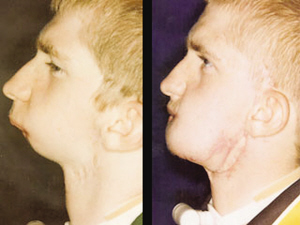 愛(ài)爾蘭少年艾倫·多爾蒂今年18歲,他患有一種罕見(jiàn)先天畸形,生來(lái)沒(méi)有下巴。從去年開(kāi)始,多爾蒂做了多次手術(shù)。美國(guó)媒體27日?qǐng)?bào)道,紐約的醫(yī)生本星期為他做了最后一次手術(shù),完成了為他制造下巴的艱巨工程。