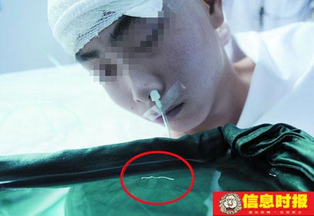 據小龍的主治醫生吳杰說,“醫院對小龍兩年來的影像資料進行了比較,發現病灶的位置居然發生了兩厘米多長的移動。什么東西能夠在人體內‘位移'這么長距離呢?最大的可能應是寄生蟲了。”之后,醫生通過開顱手術,果然從小龍的腦袋里“釣”出一條雖斷裂成三段,但主要部分依然活生生的寄生蟲——裂頭蚴。據小龍父親介紹,由于迷信多吃當地山里的野生青蛙能夠強健身體,小龍父親從小龍3歲時就開始為其捕捉青蛙食用,夏季幾乎天天都能吃上一餐,一直到其六歲后方才減少捕食。