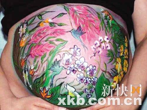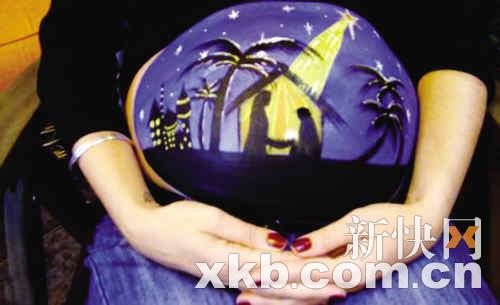 據英國《每日電訊報》12月22日報道,圣誕節即將來臨,懷孕媽媽都擁有一款獨一無二的圣誕卡——在自己凸起的肚皮上畫畫,拍成照片,再寄給親朋好友。據專業畫師說,孕婦肚皮是絕佳的人體彩繪部位:空間大,可以天馬行空地創作,此外還可以為肚里面的寶寶做按摩。孕婦們也認為這是一個絕妙的主意。據說,每一位收到“肚皮卡片”的朋友都感到很興奮。