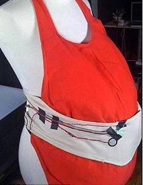 “懷孕腰帶”可以監(jiān)控胎兒蹬踢母親腹部的頻率,并自動上網更新“胎兒博客”的日記內容。“胎兒博客”日記的內容通常是:“12月17日:我在上午9:15踢了一下母親。”或者是:“12月17日:我在中午11:38又踢了一下母親……”