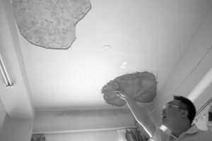 就在記者了解情況過程中,侯女士不斷出現(xiàn)惡心、嘔吐等癥狀。“這房子也太不結(jié)實了,去年10月份臥室靠近窗戶的天棚就掉了一塊墻皮,好在家里沒人,后來我們自己用水泥抹了一下。”當天,倪先生找到了負責小區(qū)開發(fā)的哈爾濱新陽開發(fā)公司,但等了3個多小時也沒見到相關(guān)負責人。