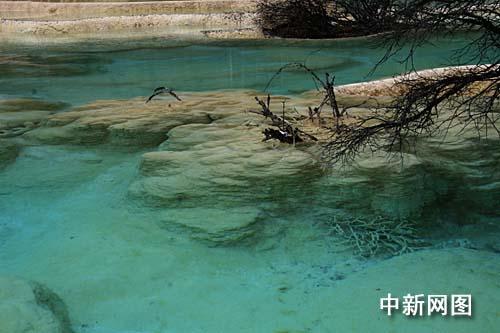 整個山谷幾乎全被乳黃色的碳酸鈣質覆蓋,從高處看去,宛若一條從岷山雪峰飛騰而下的黃龍,景區由此得名。一層層的碳酸鈣形成層層疊疊的梯狀湖泊、池沼,水色因水底沉積物和山色的千變萬化,而呈黃、綠、淺藍、蔚藍等顏色,是名副其實的“人間瑤池”。