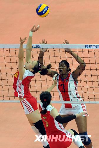 在以0:2落后的絕境下,中國女排的“青年軍”用一場絕地反擊詮釋了女排精神,在5日晚“櫻花衛廚杯”2009年中國國際女排精英賽昆山站最后一場比賽中,中國隊以3:2逆轉擊敗古巴隊,從而以三戰全勝的戰績獲得本次比賽冠軍。