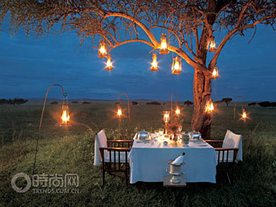 整個營地一副上個世紀20年代走出非洲的風情,帳篷里的裝置非常精致,甚至可以說件件都是奢侈品。晚餐席間,大家熱烈地討論了今后一周我們要做的事情,在大草原上打網球、騎馬旅行、溫泉SPA當然,最重要的就是看動物們的舉家遷移,如果山還不夠高的話,坐直升機怎么樣?我們的專機隨時聽候起飛命令。
