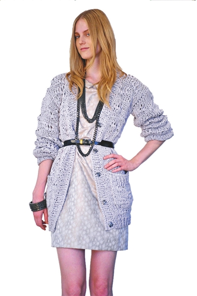此外,將棒針針織與雪紡或起毛皮革等不同面料進(jìn)行搭配,可讓針織衫呈現(xiàn)全新的表情。由于棒針毛衣帶給人本身已經(jīng)很狂野了,所以在色彩的選擇上以黑色、茶色和紅色為主,雖說流行,但也有人一穿這種灰暗的顏色就顯得老土,怎么辦呢?這就要靠值得玩味的細(xì)節(jié)了。比如抽帶、細(xì)皮條和大紐扣……(舒志娟)