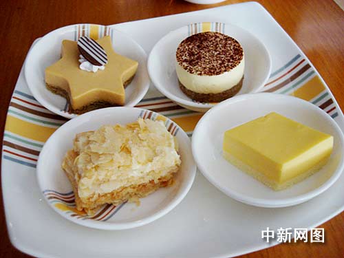(四)正統的英式下午茶的點心是用三層點心瓷盤裝盛,第一層放三明治、第二層放傳統英式點心Scone、第三層則放蛋糕及水果塔;由下往上開回吃。至于Scone的吃法是先涂果醬、再涂奶油,吃完一口、再涂下一口。