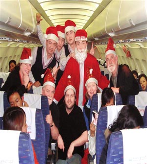 今天就是西方的“平安夜”了,昨天上午,在成都飛往上海的3U8961航班上,全體機(jī)組成員戴上了圣誕帽,和旅客們一起猜謎,進(jìn)行有獎(jiǎng)問(wèn)答(右圖)。機(jī)上7名來(lái)自美國(guó)的旅客還和乘務(wù)員們一起唱起了圣誕歌,乘客們提前感受了一把圣誕平安夜的熱鬧。