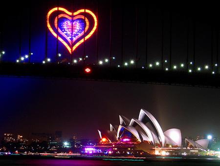 浪漫的心型燈光點亮悉尼港灣。