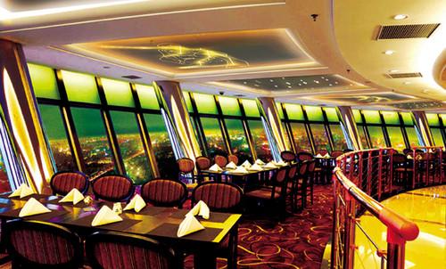 中央電視塔旋轉餐廳,在221米相當于79層樓的“ 天上”深情相擁,怎能不心襟蕩漾?