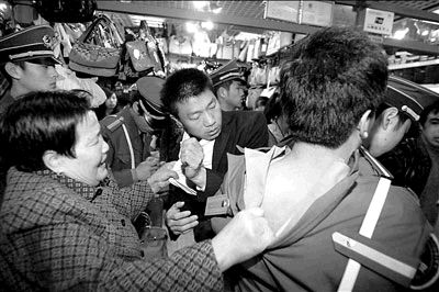 因售假受到封攤處罰,秀水街市場攤主與管理方的矛盾愈演愈烈。15日,秀水街市場對第三批8個被控售假的商戶進行封攤處理。其間,封攤人員遇到了攤主及其“親友團”的殊死抵抗;一老太太還在地上打滾,堅決不讓保安靠近自己兒子的攤位。