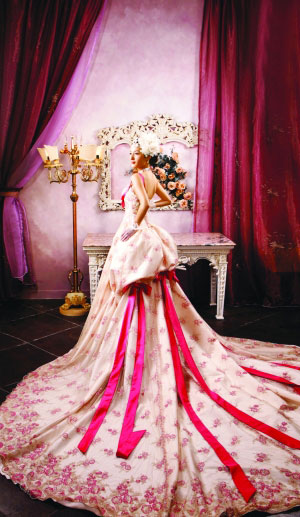 米蘭婚紗攝影的婚紗陳列區(qū)有上百件多彩炫目的婚紗、禮服,要從這么多件婚紗里選出幾件適合自己的,還真要有點(diǎn)耐心!米蘭負(fù)責(zé)人告訴記者,先要搞清自己適合穿哪種材質(zhì)婚紗。婚紗的材質(zhì)有很多種,比如全真絲高貴典雅;雪紡材質(zhì)清爽涼快;洋緞面高貴大方;蕾絲材質(zhì),是作為裝飾及點(diǎn)綴之用;塔府綢,輕身而滑溜,給人輕盈的感覺。如果你屬于可愛型,可以選擇蕾絲設(shè)計較多的款式;如果你的氣質(zhì)適合高貴典雅的風(fēng)格,就選擇洋緞面婚紗,因?yàn)樗堋疤恕保?/p>