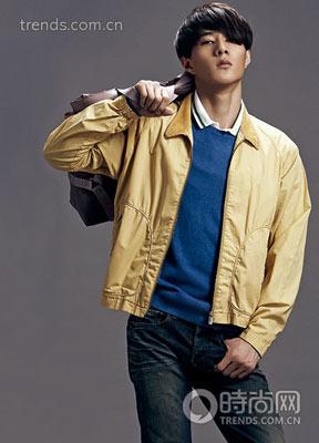Polo衫 Lacoste Red Label、藍色針織 Energie、牛仔褲 We Are Replay、黃色夾克 dunhill、牛津鞋 Prada、包 Z Zegna