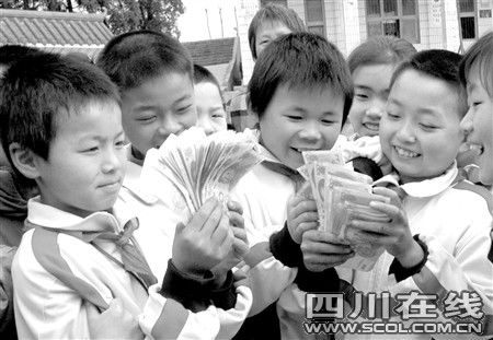 這里距離學校還有1000多米,8人身負特殊使命,一路小跑。“報告老師,我們交錢來了!”教導主任易光勇正準備去上課,門口擁來的一群孩子送來一大堆現(xiàn)金,令他十分感動。在易光勇的幫助下,孩子們把錢分成幾組,大家分頭清點,然后統(tǒng)一統(tǒng)計,共有現(xiàn)金8900元。