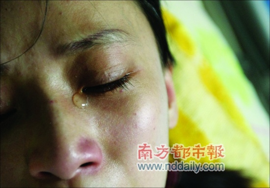 劉娟躺在病床上,談到事發經過,眼角流下淚水。本報記者霍健斌攝