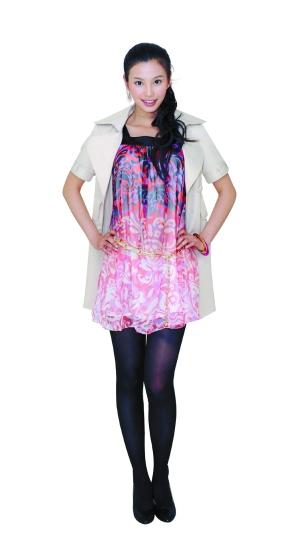 春天忽冷忽熱,里外兩件套的搭配可以隨著溫度變化增減衣物。里面,是具有夏天感覺的薄雪紡裙,外面,是百搭米色的中袖風衣裙。內外長度相仿,露出少少裙擺,神秘又浪漫。