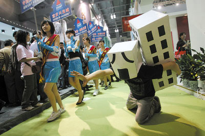 sangangang:重慶的房交會很少看到這樣的行為藝術(shù),有創(chuàng)意!